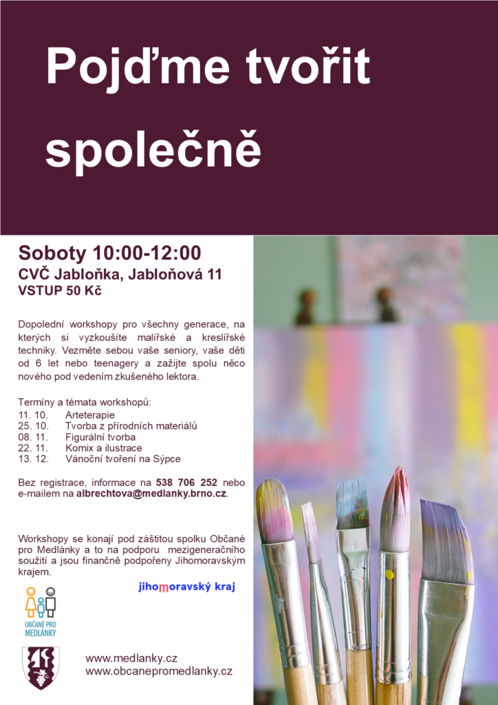 Na podzim nás opět čeká cyklus mezigeneračního tvoření různými technikami na různá témata. Sobotní dopoledne jsou ideální pro porarodiče s vnoučaty jako náplň jejich společného času. Workshopy jsou vhodné pro děti od 6 let.